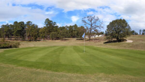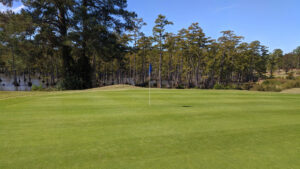 If you choose to test the corners and fly over the tall pines that sit as guardians to the green, like a knight would stand at the tower wall to protect their King, they will protect the course.